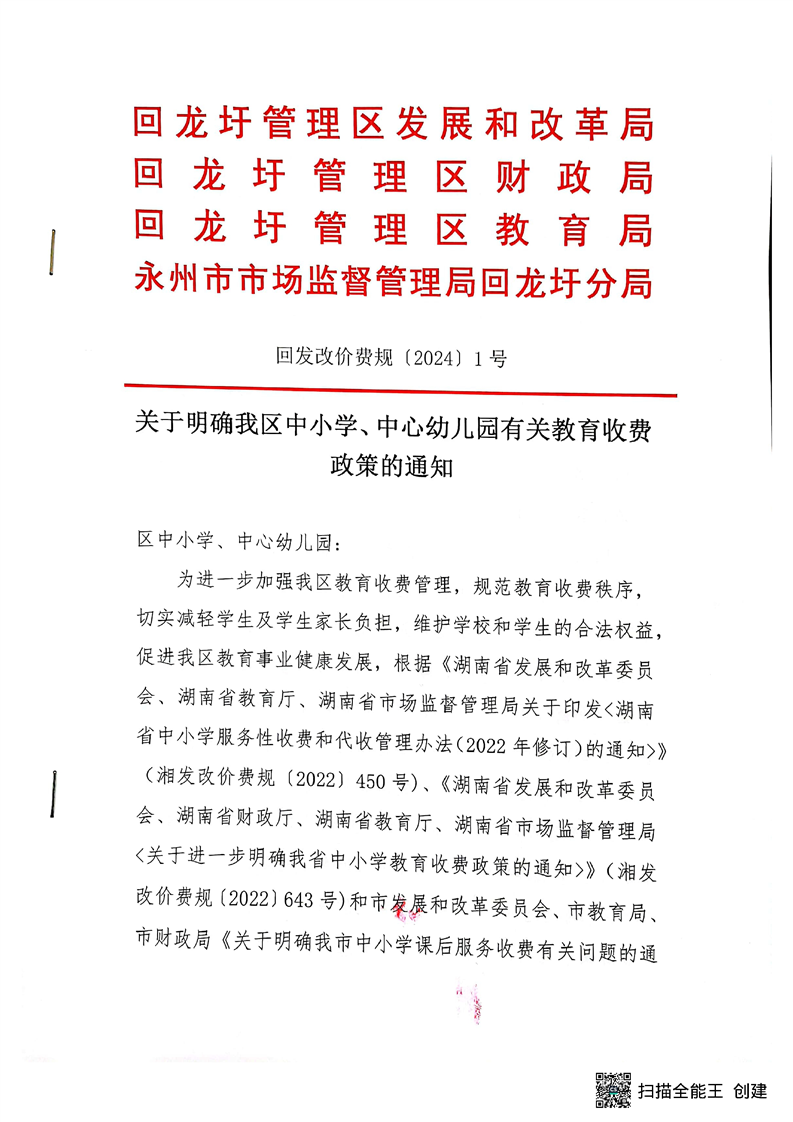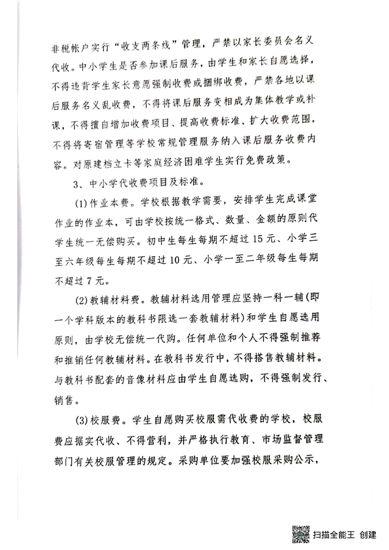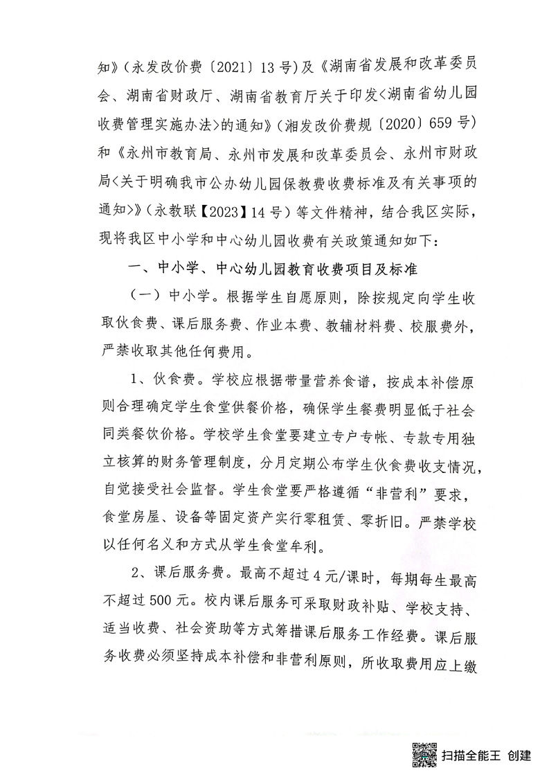 关于明确我区中小学、中心幼儿园有关教育收费政策的通知