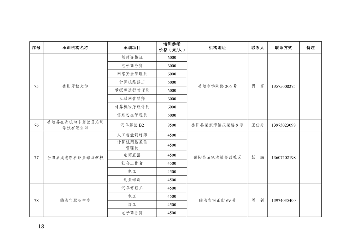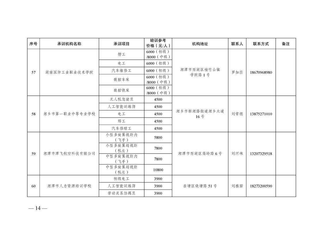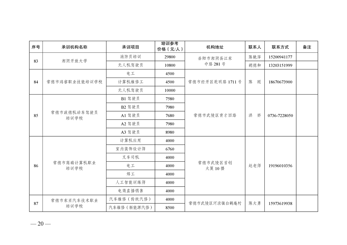 2023-2025年湖南省自主就业退役士兵职业技能培训机构名单及承训项目目录(2025版)