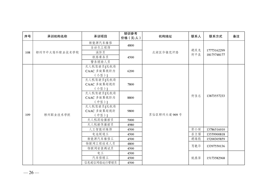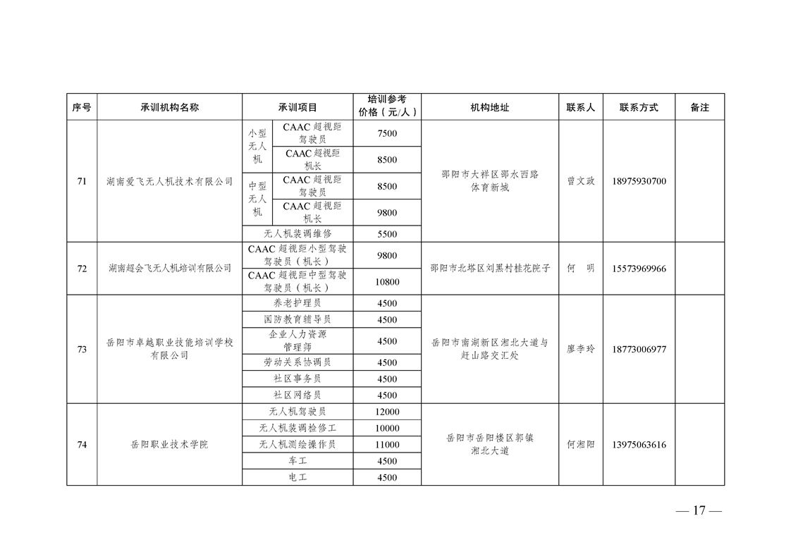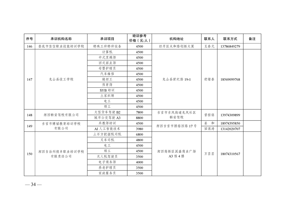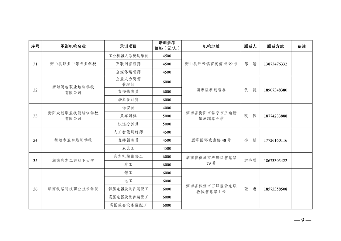 2023-2025年湖南省自主就业退役士兵职业技能培训机构名单及承训项目目录(2025版)