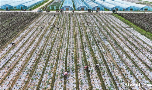 8月13日,新田县中山街道东升村,村民在田间管护番茄。立秋过后,当地菜农抢抓农时进行除草、施肥、补秧等农事作业,为蔬菜丰产丰收打好基础。