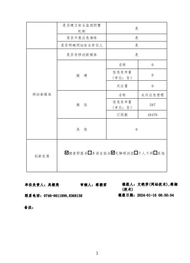 名称: 永州市应急管理局2023年度政府网站工作年度报表